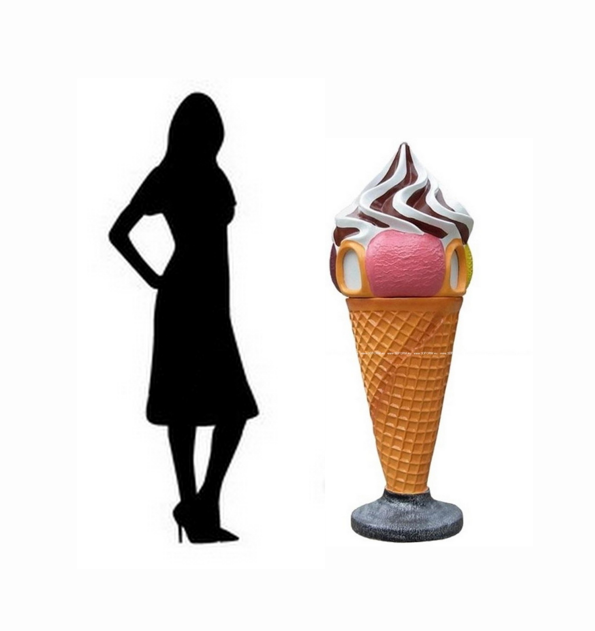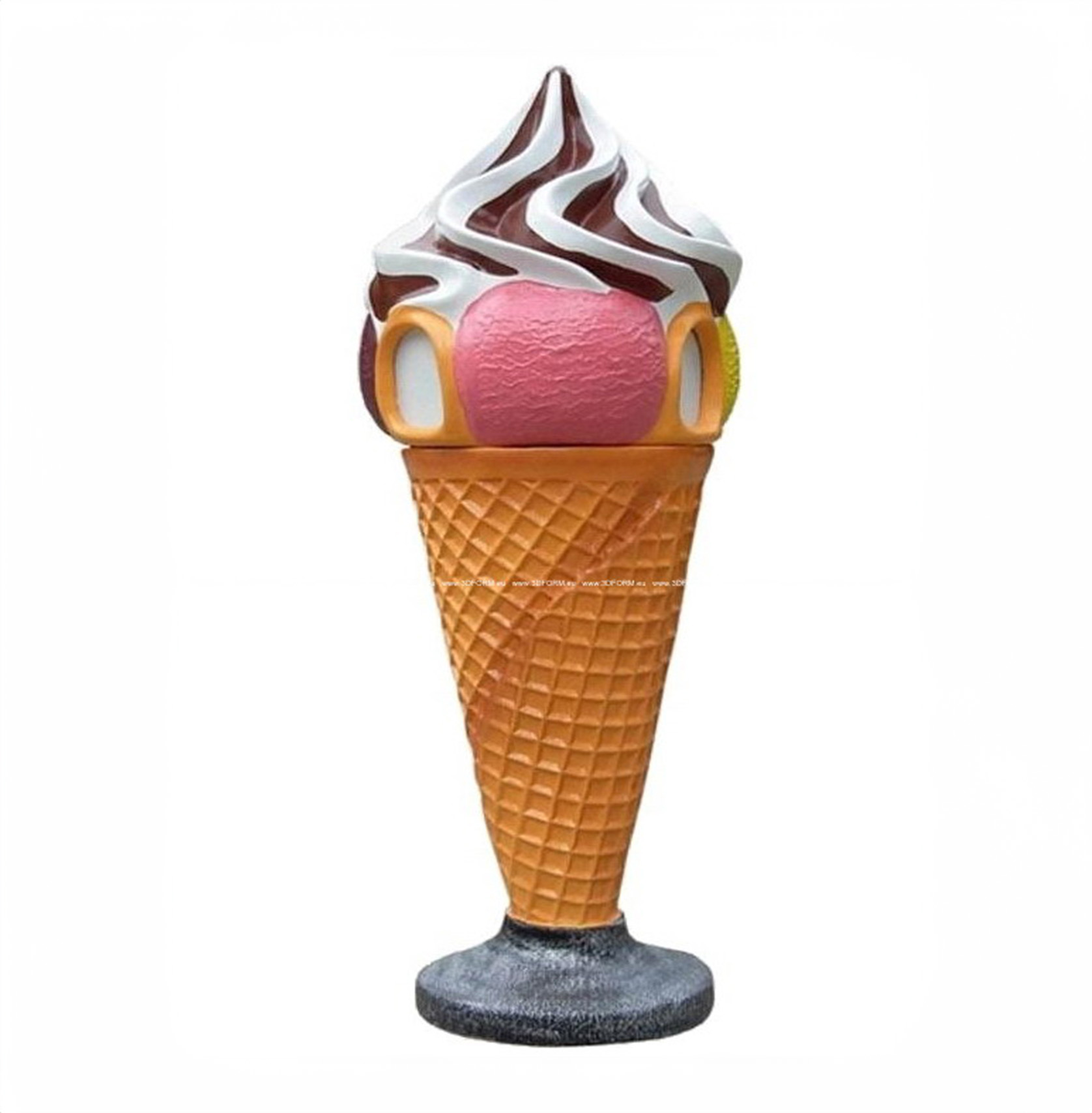 With impressive dimensions of 160 cm in height and 65 cm in diameter, our ice cream figure with topping is large enough to catch the eye, yet compact enough to fit in various locations. The product design with accurately replicated details, such as cone texture and shiny topping, makes it not just an advertisement but a true artistic installation.
