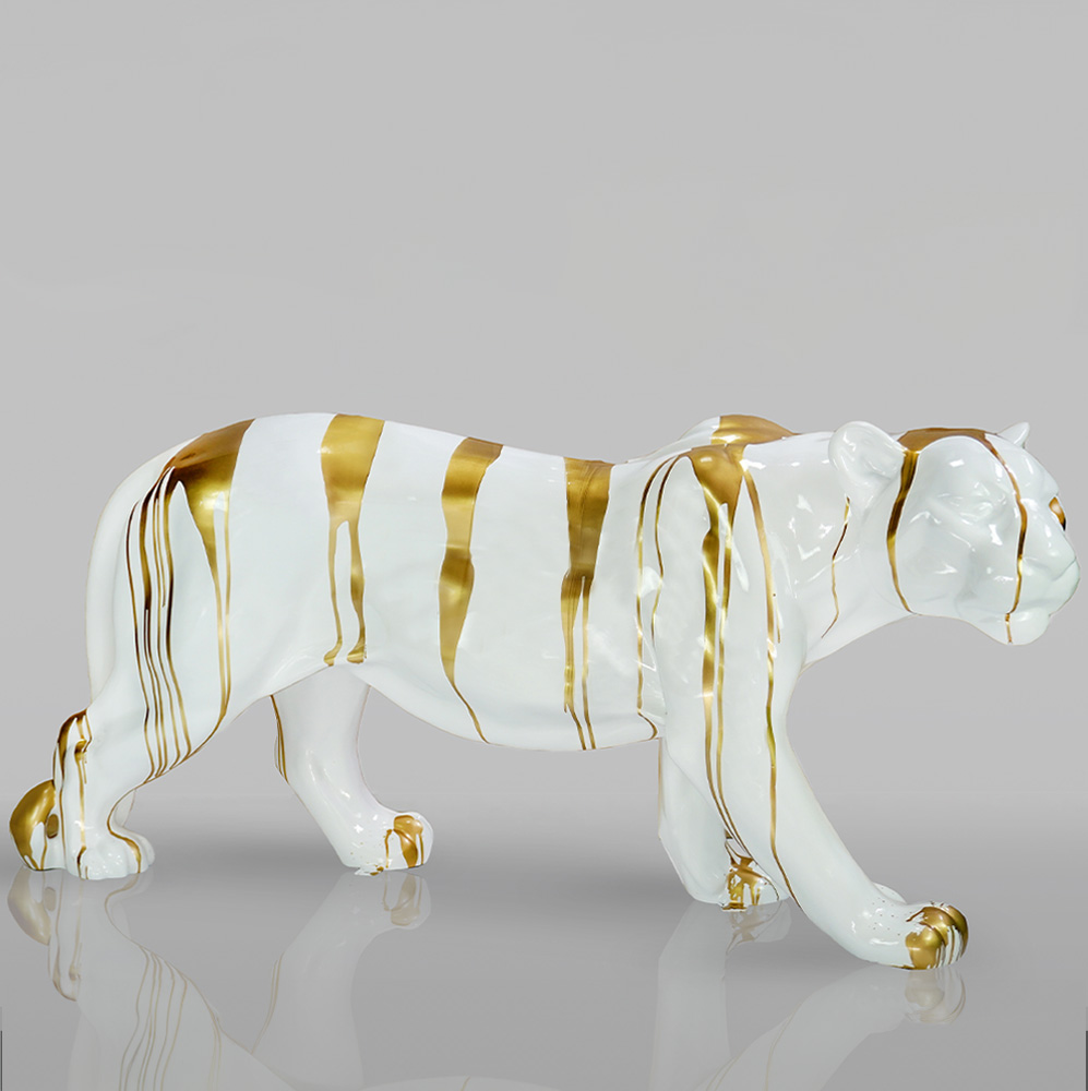 White Panther standing in natural dimensions – golden trash
