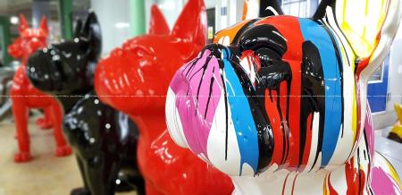 Colorful sitting bulldog, H-170cm, made of fiberglass laminate