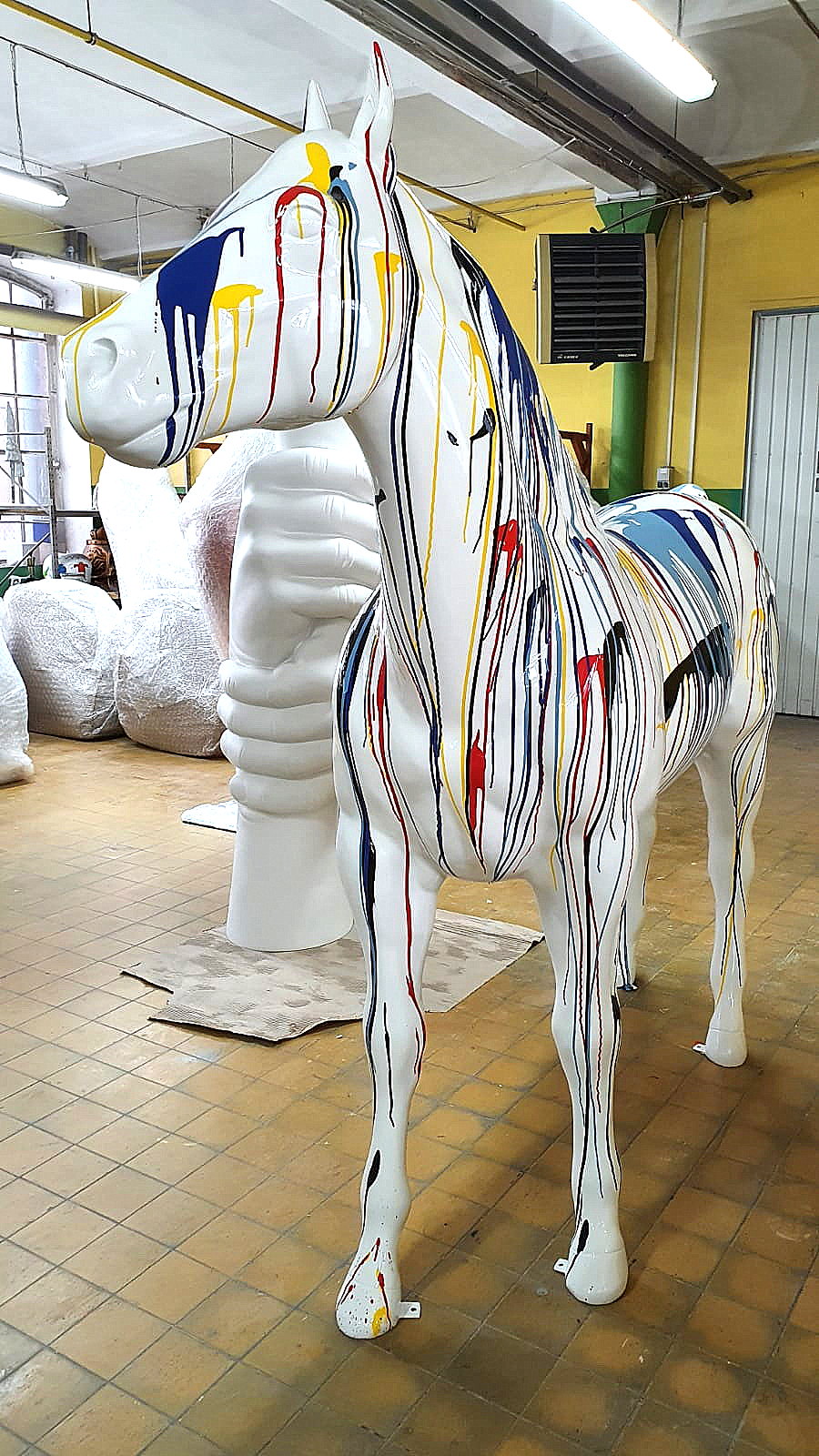 Product description: Our colorful life-sized 3D figure in the shape of a horse is an excellent decoration that attracts attention and adds character to any environment. Made of high-quality PWS fiberglass laminate, our figure is durable and weather-resistant, making it perfect for both indoor and outdoor use.