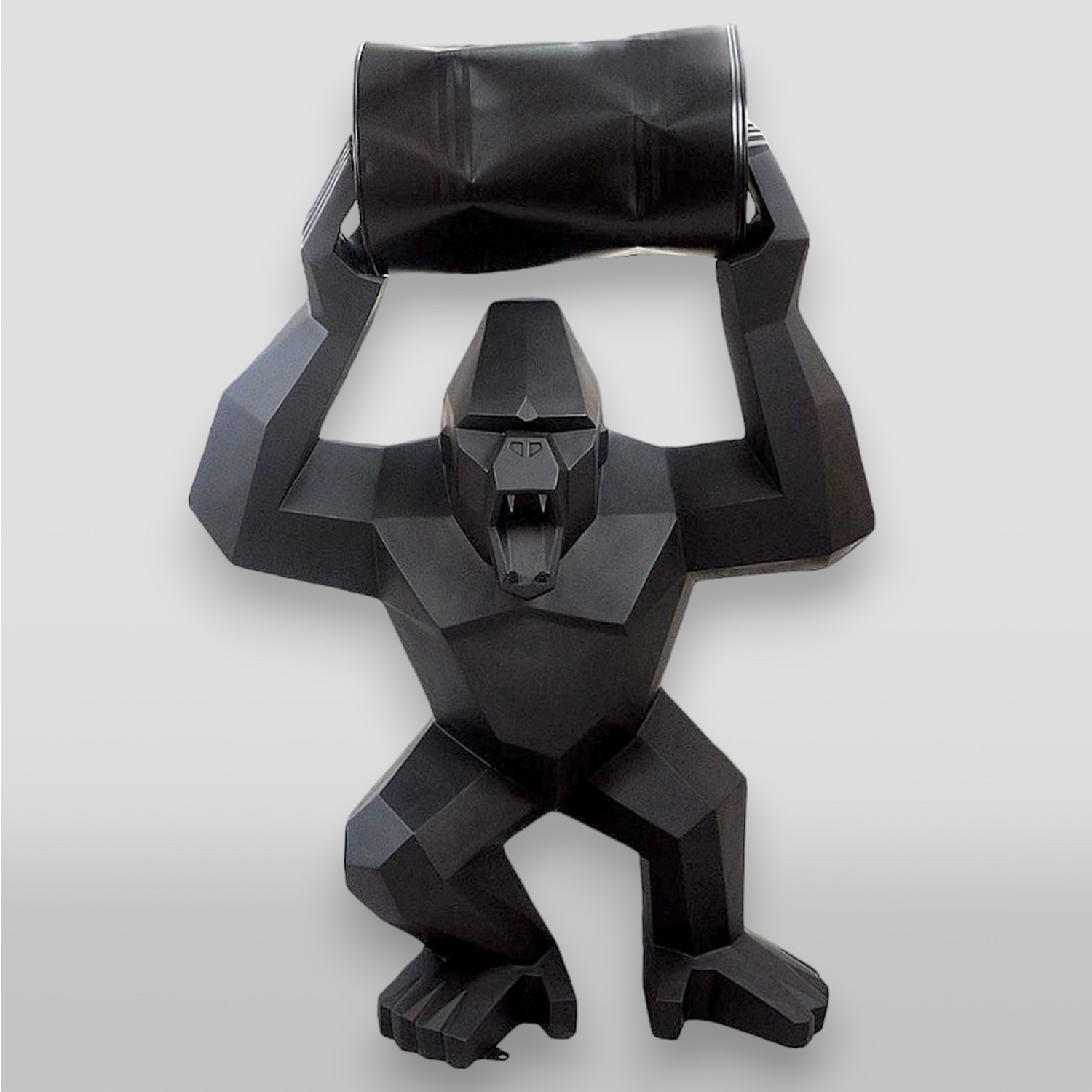 Geuometric Gorilla with Barrel Single Color Sculpture