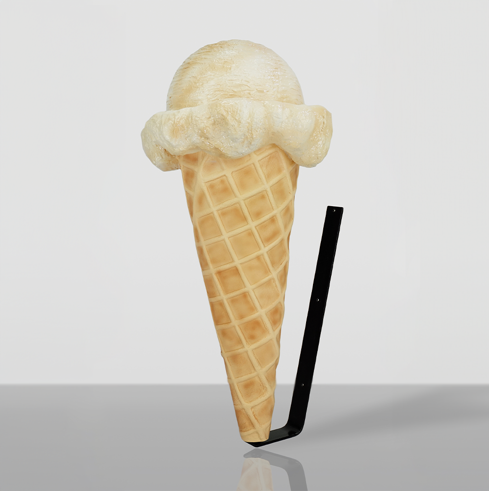 Advertising ice cream in pastel beige, either placed on a base or mounted on a wall.