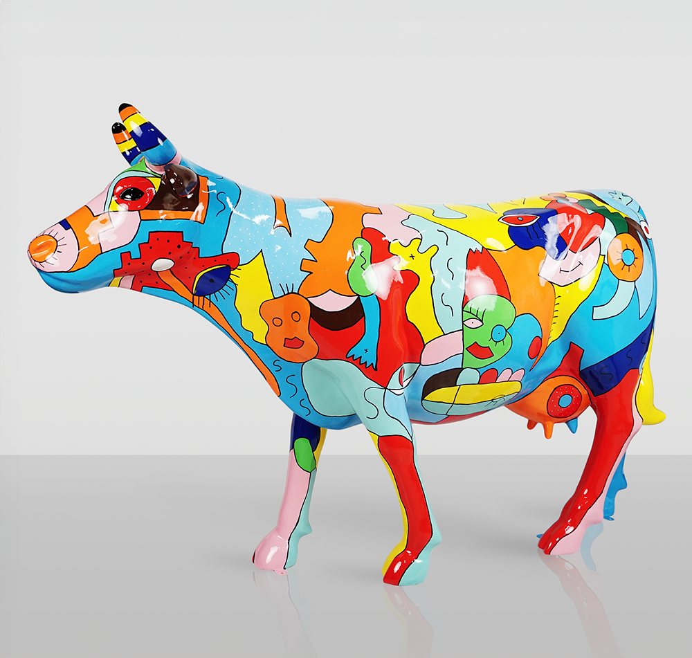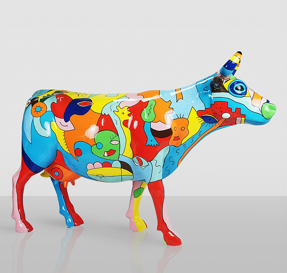 Large Figure – Hand-Painted Cow with Picasso Motif