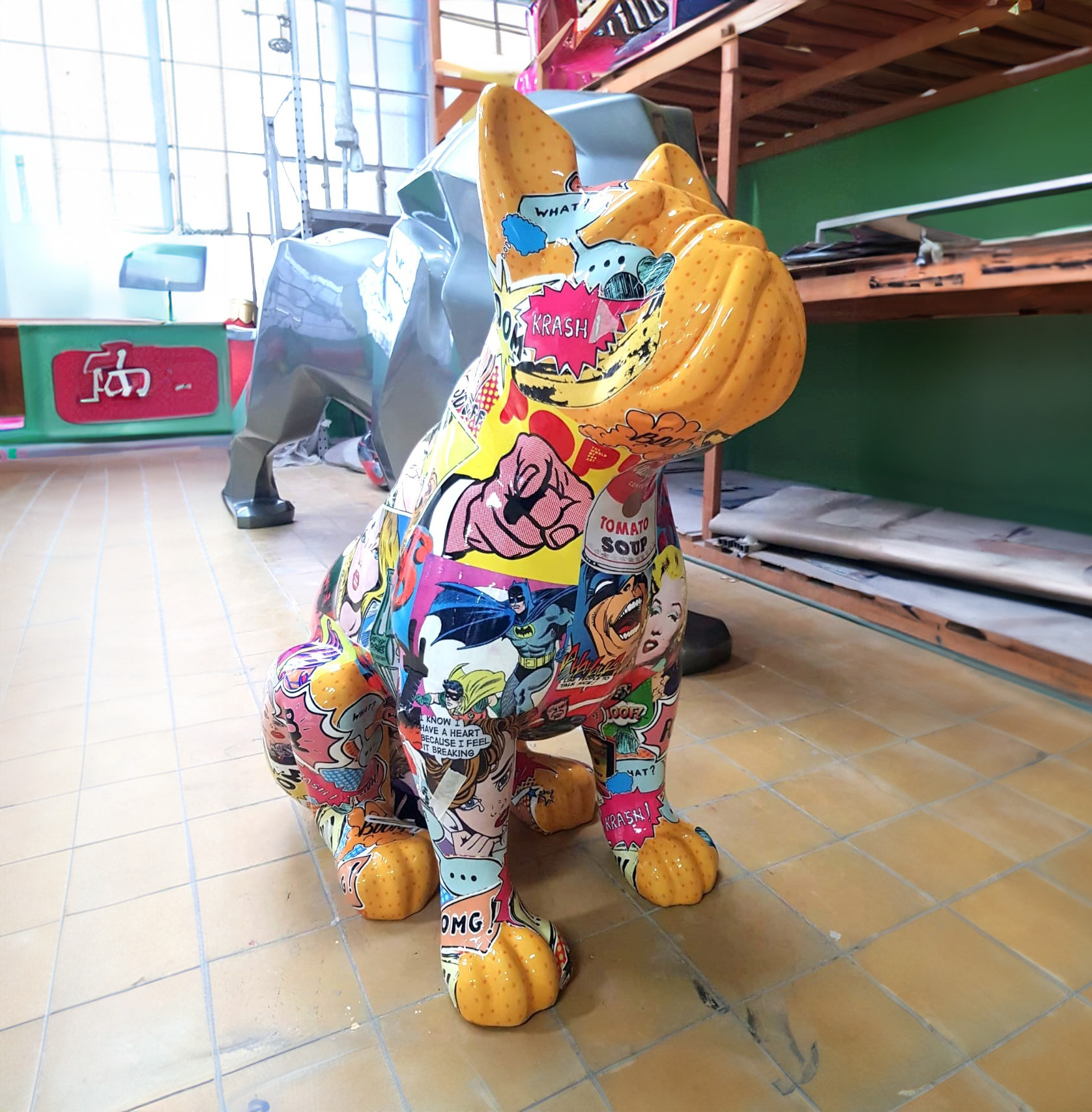 The sitting bulldog in a pop-art version is a unique advertising figure that will delight any art lover and fan of original designs. Every detail of this figure has been created with attention to the smallest elements, making it unique and exceptional. The artistic pop-art inspiration naturally evolves, so the figure may slightly differ from the images presented. We are open to your suggestions regarding the graphic elements that are important to you in order to create the perfect figure for you.
