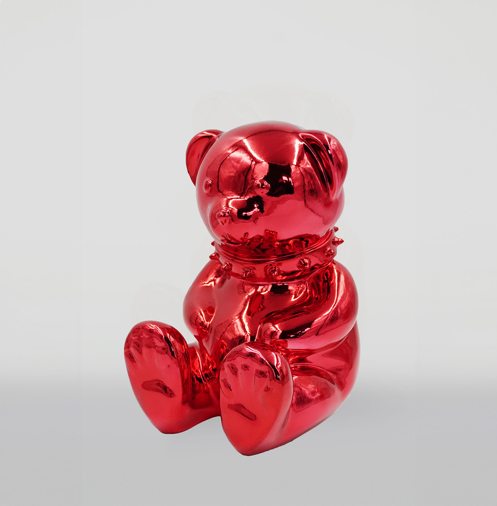 The possibility of color and size customization according to the client’s guidelines makes our 3D figure Bear 31cm with red chrome spiked collar fit perfectly into any interior, event, gallery, or store. Thanks to its unique design, it can be used as both an outdoor and indoor advertising element, as well as a decoration for an office or home.