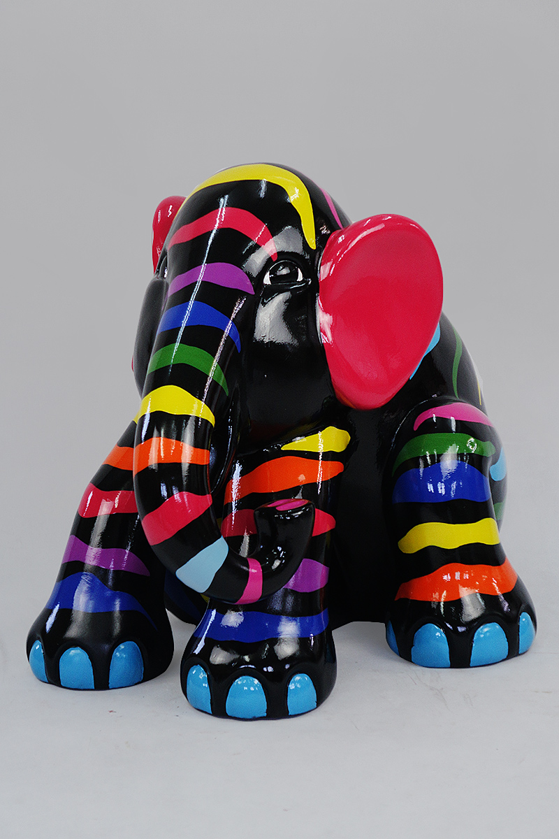 Header: 3D Sculpture – Sitting Elephant L – black stripes