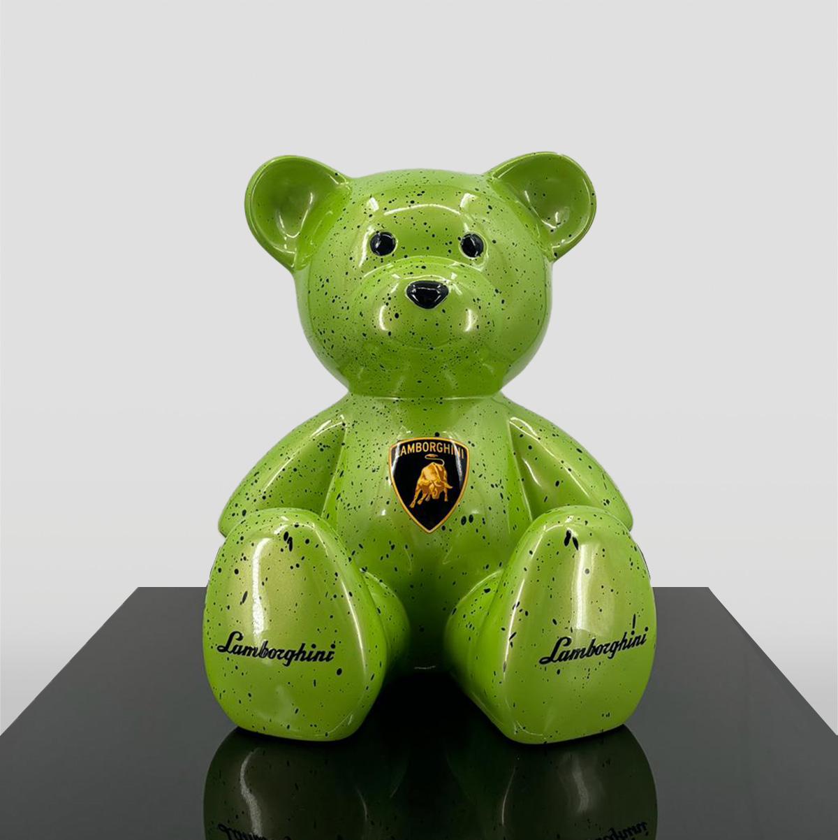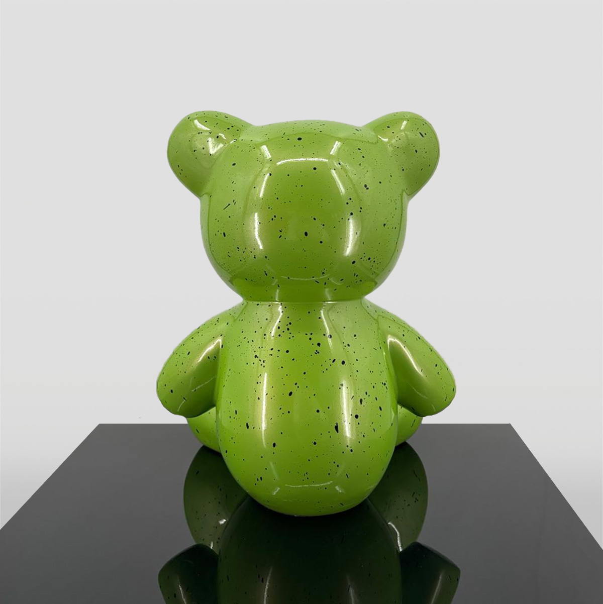 Thanks to its unique design, this little green bear attracts attention and adds character to any room. Its paint-splattered logo gives it a distinctive look that will surely delight anyone who sees it.